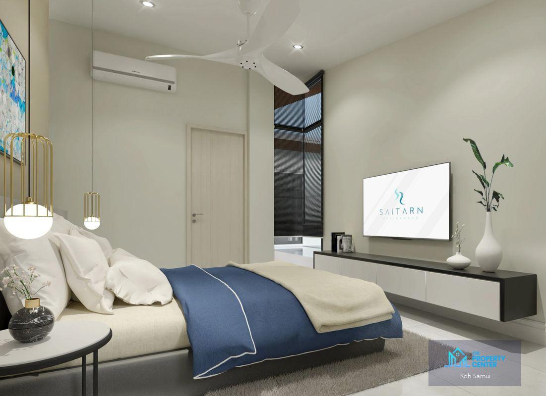 This villa type is built on a 214 to 411 sqm plots of land depending on the size of the land the build space can be from 107 sqm to 205 sqm. The villa offers a spacious living area with a lounging area and a kitchen available to buy with or without a private swimming pool. The property has 2 bedrooms each with en-suite bathrooms and garden views.