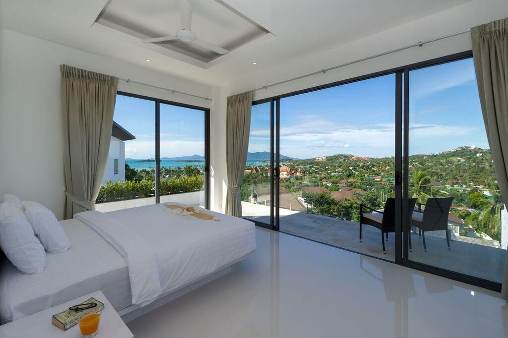 This beautiful modern villa features 3 bedrooms, 3 bathrooms and an infinity pool with a spacious terrace area with panoramic views of Beach and Mountain. All 3 air-conditioned bedrooms offer king size beds and each with an ensuite bathroom. The living area offers an open-plan fully equipped kitchen, dining room with a large dining table and living room with a flat screen smart TV and can go to the swimming pool direct with easy access to the villa.